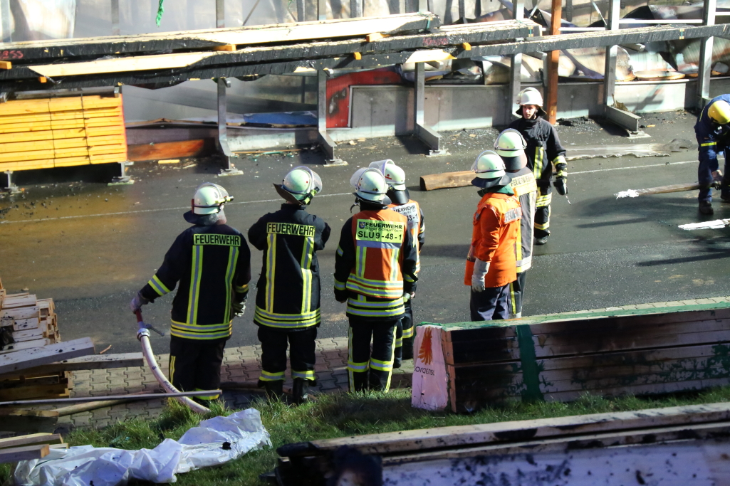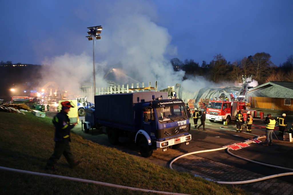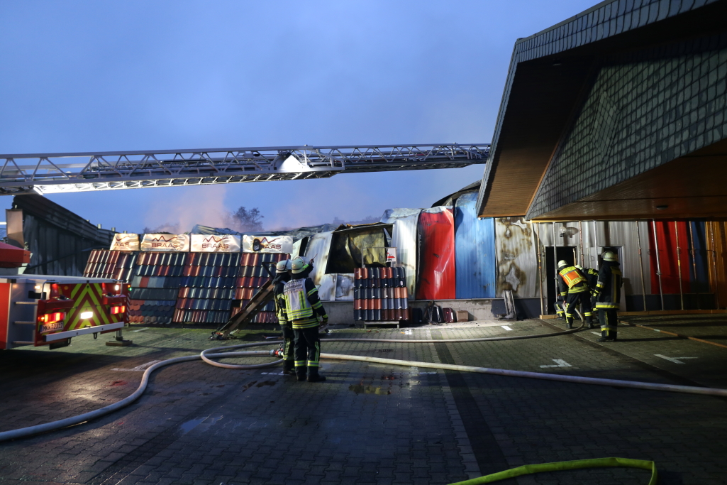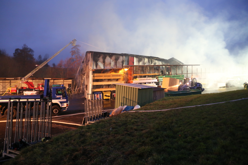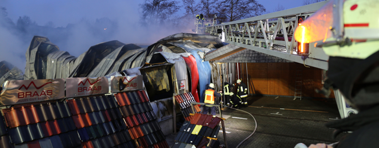 [/dropshadowbox]Neben der Produktionshalle wurden auch mehrere Firmenfahrzeuge weitgehend zerstört. Die Kriminalpolizei hat noch in der Nacht erste Ermittlungen aufgenommen. Auch die Staatsanwaltschaft Hanau wurde bereits informiert. Zur Ursache des Brandes liegen derzeit noch keine Erkenntnisse vor. Wann die Brandermittler mit der unmittelbaren Spurensuche in der Halle beginnen können, steht noch nicht fest. +++