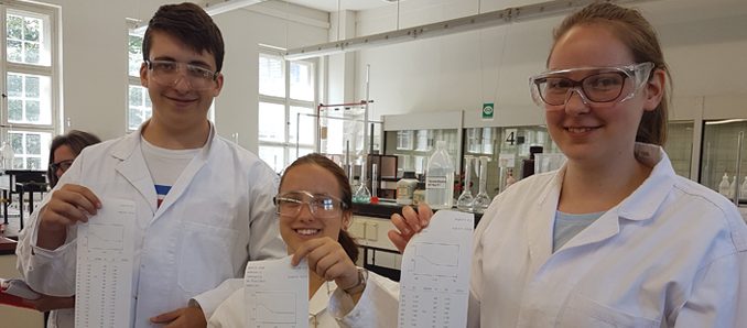 Hierbei bot sich den Gymnasiasten die Möglichkeit, das 14-tägige Praktikum unentgeltlich in einem Verbindungshaus zu verbringen. Für Janina Schubert war es besonders interessant, dass sie mit Chemikalien arbeiten konnte, die in der Schule nicht vorhanden sind. Dabei lernte sie auch neue Arbeitsmethoden kennen. Die Aufgaben seien zwar fordernd, dennoch zu schaffen gewesen. Unter anderem wurden Produkte mit einem 3D-Drucker hergestellt. Julia Mehler zeigte sich von den Laborverfahren mit Geräten beeindruckt, zu denen man in der Schule keinen Zugang hat. Fabio Janisch fand die zwei Wochen einfach nur super. So konnten die Schüler für sie sehr interessante Vorlesungen aus der anorganischen Chemie hören.