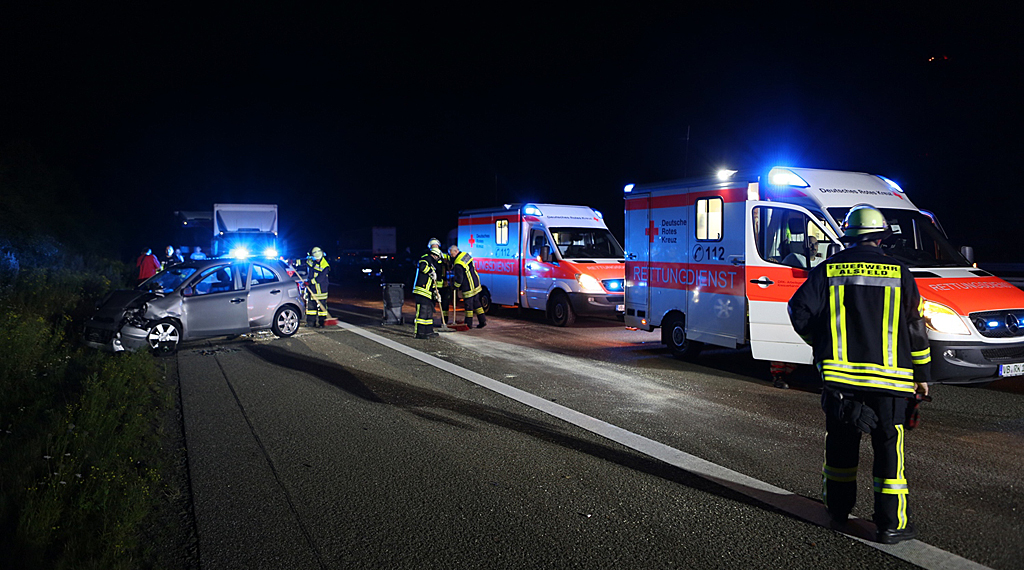 Mehrere Einsatzfahrzeuge der Feuerwehren Alsfeld und Homberg (Ohm), drei Rettungswagen und zwei Notarzteinsatzfahrzeuge des Vogelsberger Rettungsdienstes sowie zwei Streifenwagen der Polizeiautobahnstation Bad Hersfeld eilten den Verunfallten zur Hilfe. Nach der Erstversorgung durch zwei Notärzte, das Rettungsdienstpersonal und durch Feuerwehrsanitäter wurde das verletzte Ehepaar mit Rettungswagen in das Universitätsklinikum nach Marburg eingeliefert, der 38-Jährige wurde per Rettungswagen in das Kreiskrankenhaus nach Alsfeld transportiert. Die von Wrackteilen gesäumte A5 wurde von Feuerwehrleuten geräumt, sie nahmen auch auslaufende Betriebsstoffe mit Bindemitteln auf. Die Einsatzleitung hatte der Alsfelder Stadtbrandinspektor Michael Eilts, der von Vize-Wehrführer Daniel Schäfer abgelöst wurde.
