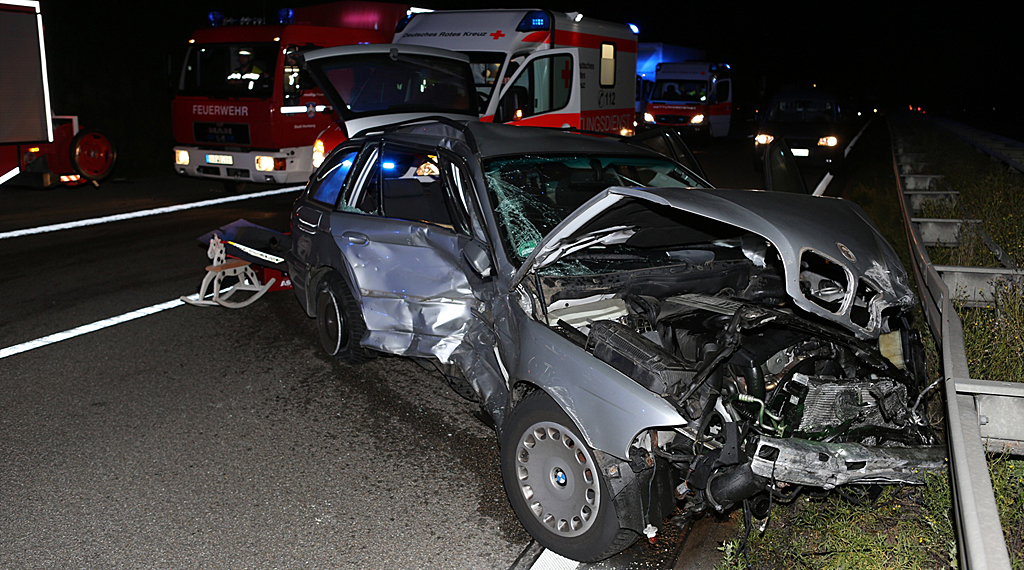 Alsfeld. Ein möglicherweise völlig betrunkener Autofahrer verursachte am Donnerstagabend einen schweren Verkehrsunfall auf der A5 in Richtung Frankfurt bei Alsfeld. Der 38-jährige Mann aus Gettorf im Landkreis Rendsburg-Eckernförde überholte laut Augenzeugen mehrere Verkehrsteilnehmer auf der rechten Spur bei Geschwindigkeiten um die 200 Stundenkilometer. Etwa dreizehn Kilometer nach der Raststätte Pfefferhöhe verlor der 38-Jährige die Kontrolle über sein Fahrzeug, prallte frontal in die Mittelleitplanke und schleuderte quer auf die Fahrbahn. Ein älteres Ehepaar aus Basel konnte nicht mehr ausweichen und prallte mit großer Wucht in das Unfallwrack. Sowohl der Unfallverursacher als auch das ältere Schweizer Ehepaar wurden schwer verletzt.