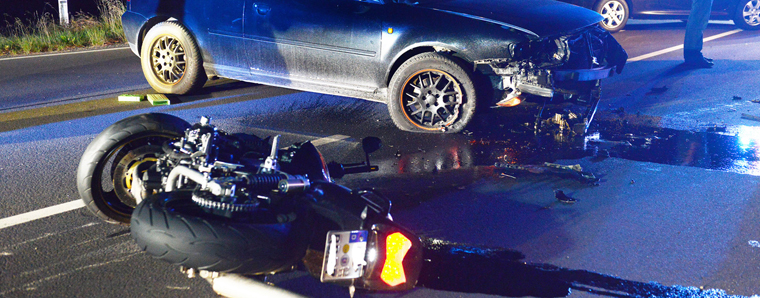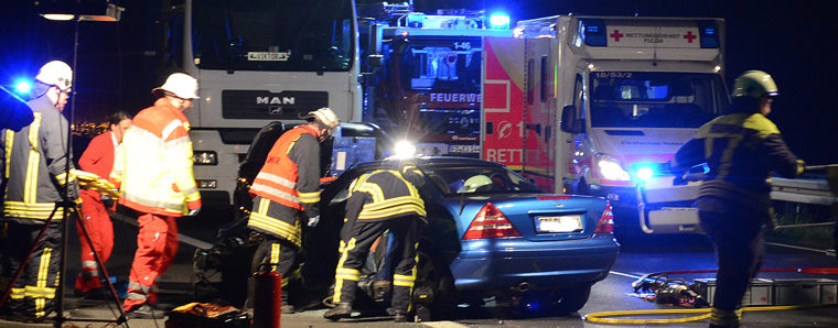 Fulda. Auf der B27 bei Bronnzell ist es am Donnerstagabend zu einem Unfall mit mehreren Fahrzeugen gekommen. Ein 28-jähriger PKW-Fahrer aus der Gemeinde Flieden fuhr mit seinem Mercedes SLK die B27 von Fulda kommend in Richtung Eichenzell. Aus bislang unbekannten Gründen fuhr der Mann in Höhe der Überführung Bronnzeller Kreisel in den Gegenverkehr und weiter Richtung Eichenzell. Obwohl der 28-Jährige mit seinem PKW mit Verkehrszeichen und Warnbarken kollidiert, setzt er seine Fahrt noch ca. 2 km weiter fort. Ein entgegenkommender PKW Fiat Punto einer 28-jährigen Frau aus Künzell kann zunächst noch ausweichen. Ein weiterer PKW Toyota Auris einer 58-jährigen Frau aus Hofbieber kollidiert jedoch mit dem Geisterfahrer. Das Fahrzeug der 58-Jährigen bleibt unfallbeschädigt an der Mitteilleitplanke stehen. Das Fahrzeug des Unfallverursachers kommt erst nach ca. 200 Meter stark beschädigt zum Stillstand. Der Unfallverursacher wurde in seinem Fahrzeug eingeklemmt, durch die Rettungskräfte schwerverletzt geborgen und zur weiteren Behandlung ins Klinikum Fulda transportiert. Lebensgefahr besteht nicht. Die beiden verletzten Fahrzeugführerinnen konnten nach ambulanter Behandlung im Krankenhaus nach Hause entlassen werden. Da bei dem Unfallverursacher der Verdacht auf Konsum von berauschenden Mitteln bestand, wurde eine Blutentnahme angeordnet und der Führerschein sichergestellt. Ein vierter PKW VW Bora wurde beim Überfahren von Fahrzeugteilen beschädigt. Der 22-jährige Fahrzeugführer aus der Gemeinde Rothemann blieb unverletzt. Es entstand ein Gesamtschaden in Höhe von 15.400 Euro. Die B 27 wurde zwischen Eichenzell und Fulda bis 00.20 Uhr voll gesperrt. Bedingt durch den Unfall wurde der Verkehr über Eichenzell umgeleitet. Hier kam es zwischen Eichenzell und Bronnzell zu einer Kollision zwischen einen Pkw und einen Motorradfahrer. Der Kradfahrer erlitt hier schwerste Verletzungen. +++ fuldainfo | e.freund