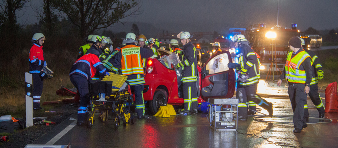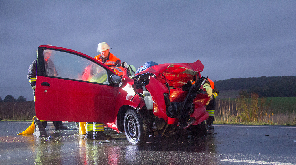 Am Dienstagabend ereignete sich gegen 18:30 Uhr der Bundesstraße zwischen Fulda und Friesenhausen ein Unfall mit zwei schwerverletzten Beteiligten. Der 38-jähriger Fahrzeugführer eines Kleinwagen Peugeot kam aus bisher ungeklärter Ursache in Höhe der Abfahrt Wissels auf die Gegenfahrbahn und kollidierte frontal mit einem entgegenkommenden 47-jährigen Fahrzeugführer aus Eichenzell. Der 47-Jährige war ebenfalls mit einem Kleinwagen, Fiat Punto, in Richtung Petersberg unterwegs. Die beiden Fahrzeugführer wurden in ihren Fahrzeugen eingeklemmt und mussten durch die Feuerwehr geborgen werden. Beide trugen schwerste Verletzungen davon und mussten stationär im Klinikum behandelt werden. An den zwei Fahrzeugen entstand Totalschaden in einer Gesamthöhe von ca 13.000 Euro. Ein vor Ort befindlicher Gutachter stellte die Fahrzeugwracks zur weiteren Untersuchung sicher. Der Streckenabschnitt war für über drei Stunden voll für den Fahrzeugverkehr gesperrt. +++