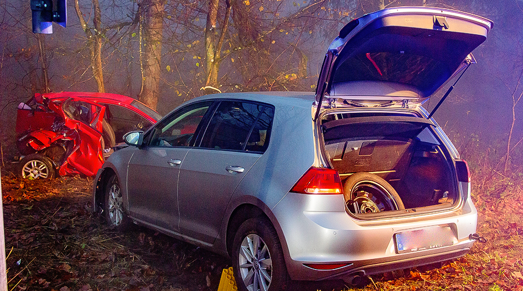 Wenige Minuten später verlor ein 21-jähriger Fahrer eines VW Golf auf der feuchten und vernebelten Strecke ebenfalls die Kontrolle über sein Auto und prallte in die Unfallstelle. Dabei wurde der Toyota stark beschädigt, die Mutter unter einem der Fahrzeuge eingeklemmt und schwer verletzt. Einsatzkräfte der Feuerwehr befreiten sie mit hydraulischem Rettungsgerät.