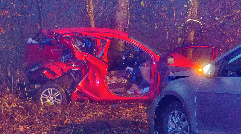 Nach ersten Erkenntnissen war die Frau gegen 15.50 Uhr bei starkem Nebel und nasser Fahrbahn mit ihrem Toyota Yaris in einer Kurve ins Schleudern geraten. Der Wagen kam von der Straße ab und blieb neben der Fahrbahn an mehreren Bäumen liegen. Mutter und Tochter konnten zunächst unverletzt aus dem Fahrzeug steigen.