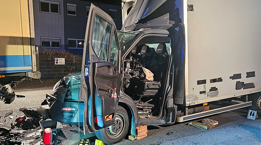 Am späten Mittwochabend gegen 22.45 Uhr ereignete sich im Industriegebiet von Eichenzell ein schwerer Verkehrsunfall. Ein Sprinter fuhr auf einen parkenden Sattelschlepper-Kühlwagen auf. Während der Fahrer sich selbst aus dem Fahrzeug befreien konnte, wurde seine Beifahrerin im Kleintransporter eingeklemmt.