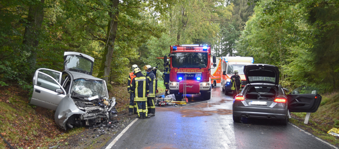 Die Leitstelle der Feuerwehr in Fulda alarmierte am Dienstag um 13.22 Uhr die Einsatzkräfte. Nach ersten Informationen stießen bei Hilders-Unterbernhards in der Rhön im Landkreis Fulda ein Opel und ein Audi zusammen. In dem Opel saß ein 82 Jahre alter Mann, in dem im Landkreis Rhön-Grabfeld zugelassenen Audi ein 22-jähriger Mann sowie eine drei Jahre jüngere Beifahrerin. Beide Fahrer und auch die Beifahrerin wurden schwer verletzt. Die beiden Männer sowie die Beifahrerin wurden mit Rettungswagen ins Krankenhaus gebracht. Wer Schuld an dem Frontalzusammenstoß war, konnte nach Angaben der Polizei am Unfallort zunächst nicht geklärt werden. Nach ersten Schätzungen entstand insgesamt ein Sachschaden in Höhe von 40.000 Euro. Die Polizei sperrte die Landesstraße während der Rettungs- und Bergungsarbeiten zeitweise komplett. Ein Abschleppunternehmen wurde zur Bergung der beiden nicht mehr fahrbereiten Autos gerufen. +++