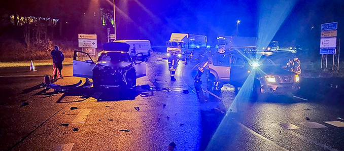 Ein 28-jähriger Mann aus Fulda war am Montagmorgen (11.12.), gegen 6.50 Uhr, mit seinem VW ID3 auf der Gersfelder Straße unterwegs und wollte nach links auf die L 3307 in Richtung Industriegebiet Eichenzell einbiegen. Hierbei übersah er derzeitigen Erkenntnissen nach den Nissan Pathfinder eines 50-jährigen Mannes aus Bad Kissingen, der gerade in Richtung Zubringer zur A 66 unterwegs war. Es kam zum Zusammenstoß beider Fahrzeuge. Beide Fahrzeugführer wurden leicht verletzt und kamen mit Rettungswagen in umliegende Krankenhäuser. Die Fahrzeuge waren nicht mehr fahrbereit und mussten abgeschleppt werden. Der Gesamtsachschaden beläuft sich nach ersten Schätzungen auf rund 16.000 Euro. +++
