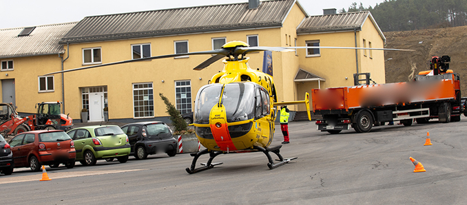 Auf einem Betriebsgelände in Großenlüder-Müs ist ein Mann bei einem Unfall lebensbedrohlich verletzt worden. Im Einsatz war auch der Rettungshubschrauber. Vor dem Eintreffen der Feuerwehr war der Schwerverletzte mittleren Alters durch Mitarbeiter befreit worden. Mithilfe eines Radladers konnten sie den Lkw beiseiteschieben. Laut Polizei befindet sich der Mann in einem sehr kritischen Zustand. Nach ersten Informationen war der Mann zwischen einem Lkw und einer Mauer eingeklemmt worden. Rettungskräfte und Polizei waren gegen 14 Uhr alarmiert worden. „Der Mann wurde lebensbedrohlich verletzt“, erklärte Sandra Hanke, Sprecherin der Polizei in Fulda. Der Mann wurde unter Reanimation mit dem Rettungswagen ins Klinikum Fulda gefahren. Vor Ort war die Feuerwehr Müs und Großenlüder sowie der Rettungsdienst sowie der Rettungshubschrauber Christoph 28. Das Amt für Arbeitsschutz ermittelt nun, wie es zu dem Unfall kam. +++ Mehr Blaulichtberichte auf unserer Blaulichtseite - osthessen112.