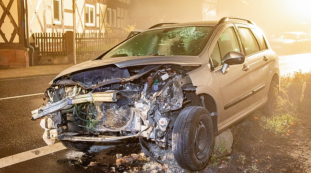 Kurz nach zwei Uhr wurde die Feuerwehr Hutzdorf und Schlitz zur einem Unfall in Hutzdorf mit einer verletzten Person alarmiert. Ein 38-jähriger Pkw-Fahrer aus Schlitz kam aus Richtung Schlitz. Er verlor aus bisher ungeklärter Ursache die Kontrolle über seinen Peugeot. Der Pkw kam von der rechten Fahrbahn ab und touchierte einen VW-Golf eines Halters aus Paderborn, der auf der linken Seite in einer Haltebucht ordnungsgemäß parkte. Danach fuhr der 38-Jährige ein Verkehrszeichen um und kam auf einem Stein zum Stillstand. Der Aufprall auf den VW-Golf war so heftig, dass dieser um 180 Grad gedreht wurde.