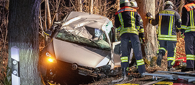 Gegen 3.24 Uhr meldete die Leitstelle des Vogelsbergkreises einen schweren Unfall auf der K87 zwischen Rudlos und ca. 1 Kilometer vor Stockhausen. Ein 25 jähriger Mann aus Grebenhain befuhr mit seinem VW Golf die K 87 von Lauterbach nach Stockhausen. Hierbei kam er aus bislang ungeklärter Ursache in einer langgezogenen Linkskurve nach rechts von der Fahrbahn ab und prallte mit der Fahrerseite gegen einen Baum. Der Fahrer wurde in seinem Fahrzeug massiv eingeklemmt und musste durch die Feuerwehr befreit werden. Er wurde schwer verletzt in das Klinikum Fulda verbracht. Die Höhe des Sachschadens beläuft sich auf rund 10.000 Euro. Ein Gutachter wurde herangezogen um die Unfalursache zu klären. Vor Ort waren 40 Einsatzkräfte der Feuerwehren aus Herbstein, Rixfeld, Schadges und Stockhausen sowie der Rettungsdienst und eine Streife der Lauterbacher Polizei. +++ [su_112]