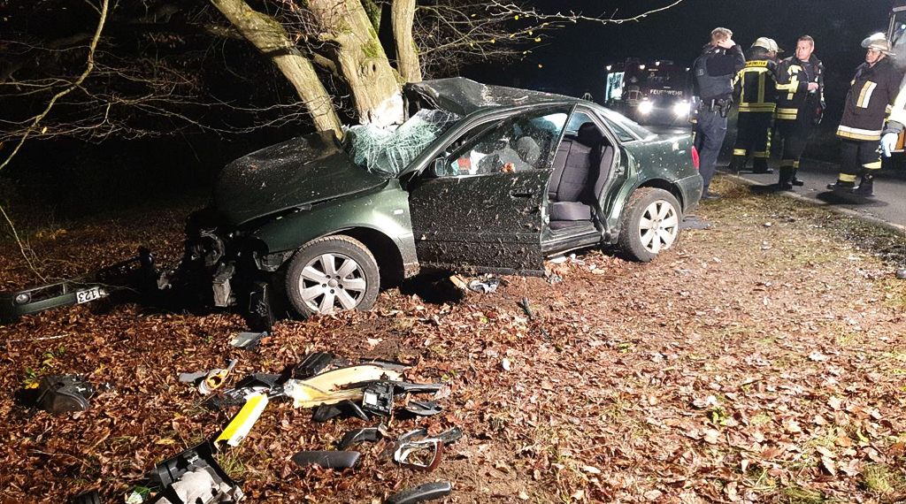 Der Fahrer und zwei Kinder konnten direkt vom Rettungsdienst versorgt und in Krankenhäuser gebracht werden. Die eingeklemmte Person auf der Beifahrerseite musste von den Einsatzkräten der Feuerwehr Salmünster mit technischen Hilfsmitteln aus dem Fahrzeug befreit werden. Die Rettungsarbeiten gestalteten sich aufgrund der starken Verformung des Fahrzeuges schwierig und langwierig, bevor der Patient ebenfalls an der Rettungsdienst übergeben werden konnte. Die Feuerwehr sicherte zudem die Einsatzstelle ab, leuchtete die Unfallstelle aus und stellte den Brandschutz sicher. Die Strecke der L 3178 war zwischen dem Abzweig K 888 nach Alsberg und dem Merneser Heiligen für die Zeit der Rettungs- und Bergungsarbeiten und der Untersuchung durch einen Unfallgutachter voll gesperrt. Da anfangs nicht ausgeschlossen werden konnte, dass es noch ein weiteres verunfalltes Fahrzeug gab, wurde der Unfallbereich abgesucht. An der Einsatzstelle waren die Feuerwehr Salmünster und die Feuerwehr Bad Soden. Außerdem waren der Stellvertretende Kreisbrandinspektor Christian Hinrichs und Kreisbrandmeister Markus Felber vor Ort. Vier Rettungswagen, zwei Notärzte und ein Organisationsleiter Rettungsdienst waren an der Einsatzstelle, außerdem die Polizei und ein Unfallgutachter. Der Einsatz war für die letzten Einheiten der Feuerwehr gegen 22:45 Uhr beendet, teilte die Feuerwehr Bad Soden-Salmünster mit. +++