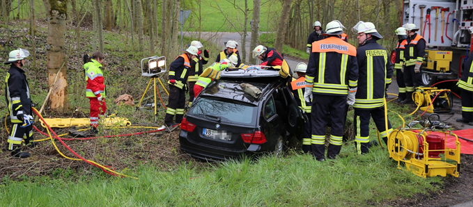Das Unfallopfer war mit beiden Beinen in dem Unfallwrack eingeklemmt.