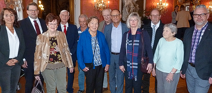 Das Training hat sich gelohnt: Der „Goldene Fisch“ für das Jahr 2022 – ein Abzeichen, das die Stadt Fulda an eifrige Badegäste und regelmäßige Schwimmer:innen vergibt, ist auch der Gruppe von Schwimmern und Aquagymnasten des Mediana Wohnstifts verliehen worden. Acht Bewohner und Bewohnerinnen in Begleitung ihrer Trainerin Claudia Tegethoff und Einrichtungsleiter Mike Mann nahmen im Fürstensaal des Stadtschlosses die Auszeichnung aus den Händen von Oberbürgermeister Dr. Heiko Wingenfeld entgegen.