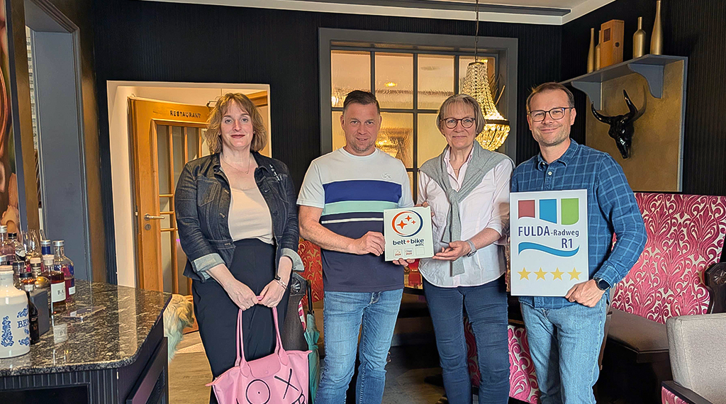 Ein besonderes Jubiläum feierte der Hessische Hof in Bebra: Seit 25 Jahren ist das Haus durchgehend Bett+Bike-zertifiziert – ein Rekord im Landkreis. Tourismusbeauftragter Jörg Peters würdigt den Betrieb als „echten Vorreiter“ und „Vorbild für andere Gastgeber in der Region“.