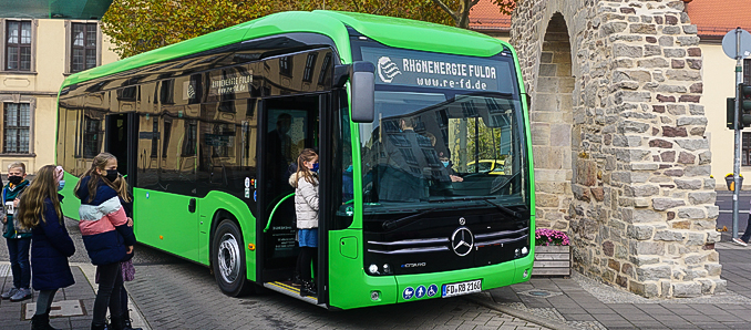 Die RhönEnergie Fulda-Verkehrsbetriebe bedienen mit 220 Bussen und über zehn Millionen Fahrplankilometern jährlich den Busverkehr in Stadt und Landkreis Fulda, in Teilen des Landkreises Hersfeld-Rotenburg sowie in Teilen des Main-Kinzig-Kreises. Dabei setzt der Verkehrsbetrieb bei seiner Omnibusflotte schon seit jeher auf hohe Umweltstandards: Über 80 Fahrzeuge tragen beispielsweise das Gütesiegel „Blauer Engel“, und in über 20 Fahrzeugen kommen bereits die umweltschonenden CO2- Klimaanlagen zum Einsatz. Die Mission E-Mobilität hat in Fulda vor drei Jahren begonnen. Die Einsatzmöglichkeit weiterer Elektrobusse im Stadtverkehr Fulda wird ständig im Zuge von Ersatzbeschaffungen geprüft. +++ pm