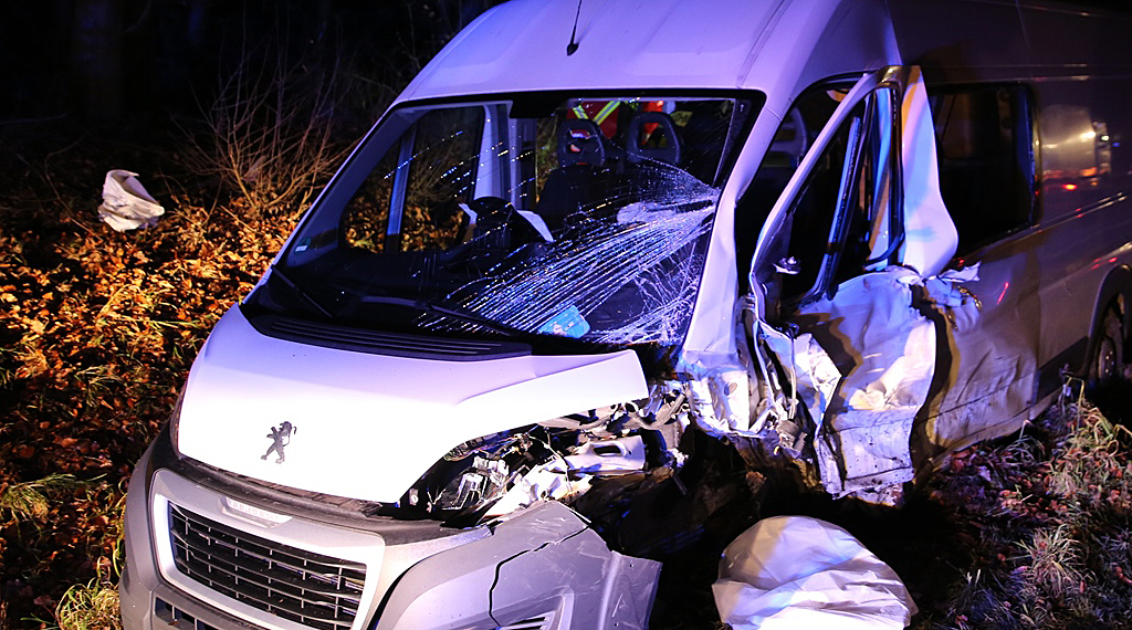 Homberg. Zu einem schweren Verkehrsunfall mit sechs Verletzten kam es am Mittwochabend auf der Landesstraße zwischen Homberg (Ohm) und dem Stadtteil Büßfeld. Laut ersten Polizeiangaben überholte der Fahrer eines mit fünf Personen besetzten Kastenwagens im Bereich einer Rechtskurve einen weiteren Kastenwagen und einen Lastwagen, dabei prallte er seitlich frontal in ein Auto. „Der Autofahrer konnte nicht mehr Ausweichen“, so ein Polizeisprecher am Unfallort. Über rund 100 Meter verteilte sich auf der Landesstraße ein Trümmerfeld mit Glassplittern und Metallteilen.