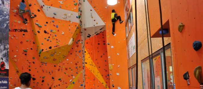 Und abwechslungsreich wurde es für die jungen Flüchtlinge aus Afrika, dem Vorderen Orient und Asien, die abseits des Schulalltags in Jugendheimen untergebracht sind, da sie größtenteils ohne ihre Eltern aus ihrem Heimatland geflüchtet sind: Die DAV Jugendgruppe der Sektion Fulda führte die Jugendlichen zunächst ins Hallenklettern ein. Während die DAVler die Kletterneulinge vom Boden aus sicherten, konnten diese ihre Geschicklichkeit in der Wand testen. Danach hieß es: Energie auftanken, beim selbst zubereiteten Buffet der Jugendgruppe. Frisch gestärkt ging es dann an die Kraftstation, bevor am Außengelände des Kletterzentrums ein Boulderwettbewerb auf die Jugendlichen wartete. Zum Ausklang ging es nochmal gemeinschaftlich an die Wände.