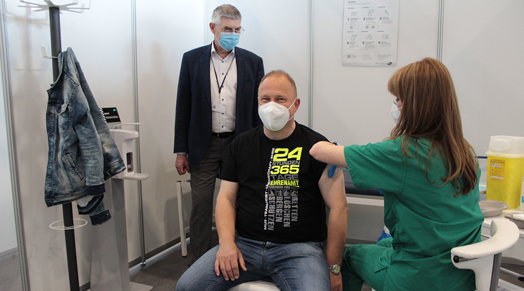 „Wellenförmig“, so beschreibt Dr. Wranze-Bielefeld die Impfkampagne. Nachfrage, Infektionszahlen, Entscheidungen aus Berlin und Wiesbaden – all das habe die Auslastung des Impfzentrums beeinflusst. Um die Vorgaben des Landes zu erfüllen, sei der Ort gut gewählt. „Unser umstrukturiertes Zentrum ist hier sehr gut aufgestellt“, sagt Michael Jahnel. Man könne problemlos die Kapazität auf 300 Impfungen pro Tag ausweiten und so schnell auf sich ändernde Bedingungen reagieren.