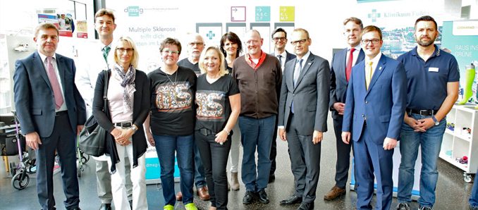 Das Motto des diesjährigen Multiple-Sklerose-Tages: „Selbstbestimmt Leben mit MS“ - und dies mit einer eindeutigen Botschaft: „Aufmerksamkeit schaffen - für eine nicht seltene Erkrankung.“ Neben Info-Ständen in der Eingangshalle, rundeten Vorträge zur Multiple Sklerose, gehalten von Fachexperten, das Rahmenprogramm im Krankenhaus der Maximalversorgung ab. Als Referent und Moderator fungierte Prof. Dr. Tobias Neumann-Haefelin, Direktor der Klinik für Neurologie am Klinikum Fulda. Weitere Gesprächspartner waren u. a. André Eydt, Vorstand der Administratiom am Klinikum, Fuldas Bürgermeister Dag Wehner (CDU), Frederik Schmitt (CDU), Erster Kreisbeigeordneter des Landkreises Fulda sowie Bernd Crusius, Geschäftsführer der DMSG-Hessen.