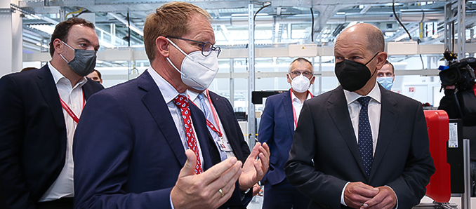 Olaf Scholz zeigte sich beeindruckt von der 40-jährigen Erfolgsgeschichte der SMA und legte in seiner Ansprache den Fokus auf den Ausbau der erneuerbaren Energien. “In nicht einmal 25 Jahren wollen wir in Deutschland klimaneutral sein. Dafür brauchen wir erheblich mehr Strom als heute – und zwar aus erneuerbaren Energien. Wir müssen den Ausbau erheblich beschleunigen und das Stromnetz zügig ausbauen, damit der Strom auch dorthin kommt, wo er gebraucht wird. Damit Deutschland auch noch in 20 und 30 Jahren ein Industrieland mit guten Arbeitsplätzen ist, brauchen wir diese Branche, die die erneuerbaren Energien ausbaut und voranbringt. Deutschland kann eine Vorreiterrolle einnehmen und zeigen, wie das geht: der Ausstieg aus Atom und Kohle – und der Einstieg in mehr Strom aus erneuerbaren Energien.“