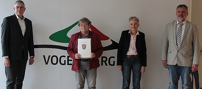 Landrat Manfred Görig, Amtsleiterin Dr. Maria Dolderer-Litmeyer und Verwaltungsleiter Bernd Sterz (von links) verabschieden Dr. Elsbeth Hof (Zweite von links) in den Ruhestand. Foto: Sabine Galle-Schäfer