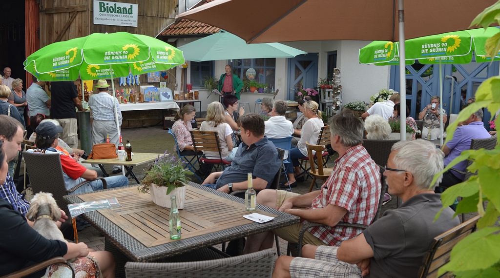 Flieden. Der Kreisverband Fulda von Bündnis90/Die Grünen und der neue Ortsverband Flieden lud zum Sommerfest ins Königreich. Bei idealem Sommerwetter wurde auf dem Hof des Biolandhofs Hartmann in Flieden ein interessantes und reichhaltiges Programm geboten. Nicht wenige Besucher nutzten die organisierte Radtour des ADFC und kamen per Rad nach Flieden. Livemusik des Duos Wild im Wald, das mit Gitarre, Ukulele und Cajon aktuelle Hits aber auch Klassiker der Pop- und Rockgeschichte gekonnt interpretierte, unterhielt die Menschen, die im Innenhof der Landwirte ein schattiges Plätzchen fanden.