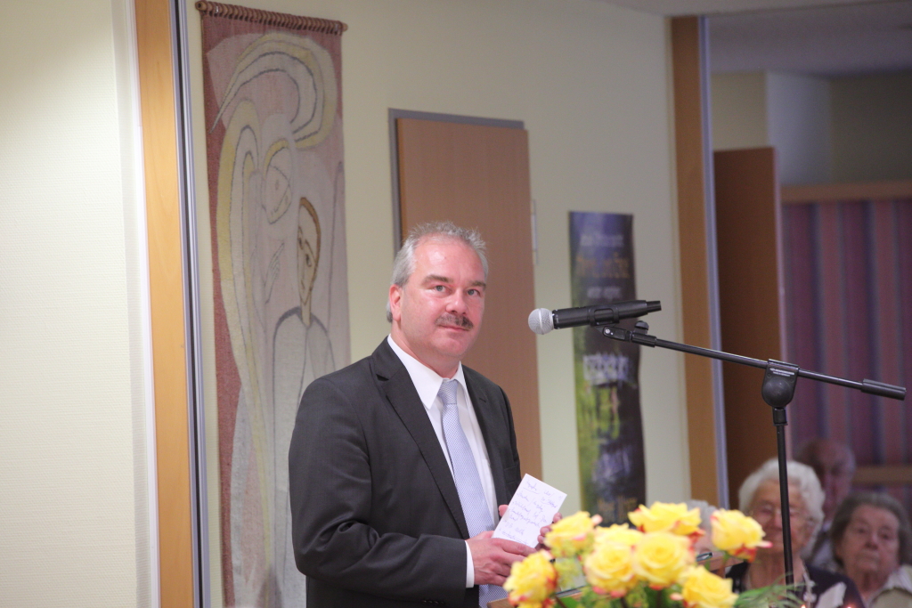 Diözesan-Caritasdirektor Dr. Markus Juch dankte in seinen Begrüßungsworten den Mitarbeitern des Pflegeheims für deren Einbringen und die gute Zusammenarbeit untereinander: „Grundvoraussetzung für ein solches Jubiläum ist natürlich in erster Linie einmal, dass Mitwirken vieler Menschen in so einer Einrichtung und dafür möchte ich mich an dieser Stelle ganz herzlich bedanken“, so der Caritasdirekror. „Ich möchte mich an dieser Stelle aber auch ganz herzlich bei den Heimbewohnerinnen und Heimbewohnern und deren Angehörige, für das uns entgegengebrachte Vertrauen, bedanken. Als wir uns vor zehn Jahren auf den Weg gemacht haben, schufen wir nicht nur eine Einrichtung, die pflegerische Dienste leistet, es war für uns immer auch Aufgabe karitativer Organisation. Insofern war unser Pflegeheim immer auch sichtbarer und erlebbarer Ort der Kirche“, so Markus Juch abschließend.