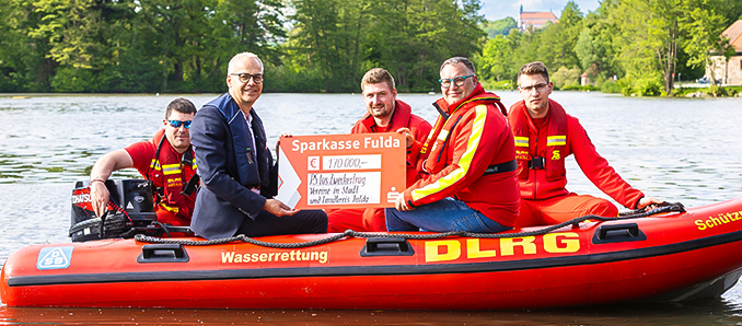 Bezirksleiter Michael Lipus und weitere Mitglieder des Vereinsvorstands berichteten aus der aktuellen Arbeit des DLRG. Das neue Boot wird wieder am Stützpunkt Fulda-Sickels stationiert sein und vor allem dann zum Einsatz kommen, wenn in heimischen Gewässern nach vermissten Personen gesucht werden muss. Uwe Marohn hob die Einsatzbereitschaft der DLRG-Aktiven hervor. „Das ist heute alles andere als selbstverständlich – umso mehr freuen wir uns als Sparkasse, mit dem PS-Zweckertrag seit Jahrzehnten ehrenamtliches Engagement in der Region zuverlässig unterstützen zu können.“