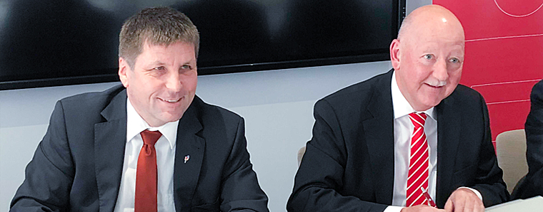 Bei der Unterzeichnung der Vereinbarungen: Der Bürgermeister der Stadt Bad Hersfeld, Thomas Fehling (FDP), und der Vorstandsvorsitzende der Sparkasse Bad Hersfeld-Rotenburg, Reinhard Faulstich. (v.l.)