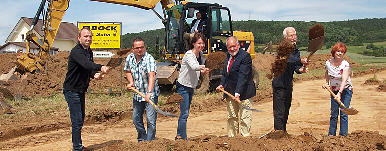 Bad-Salzschlirf. Der erste Spatenstich wurde gesetzt. Die Arbeiten zur Erschließung 27 neuer, attraktiver Bauplätze haben begonnen. Gemeinsam mit Mitgliedern des Gemeindevorstandes und dem Vorsitzenden der Gemeindevertretung sowie Verantwortlichen der ausführenden Firma Bock aus Hünfeld bewegte Bürgermeister Matthias Kübel die ersten Erdhaufen. Erschließung bis Herbst 2017 abgeschlossen.