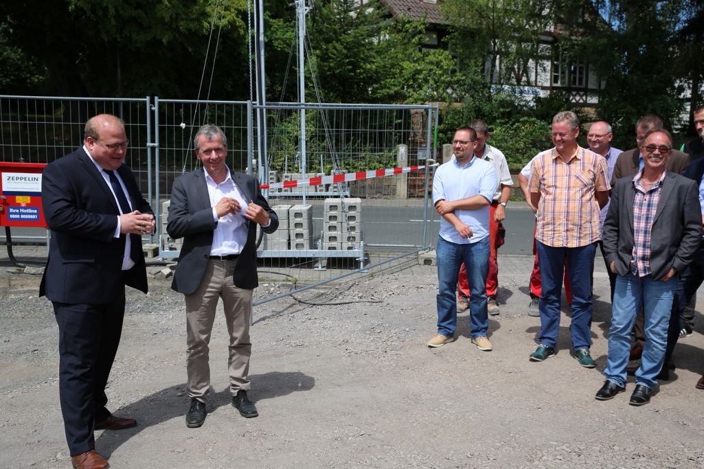 Alsfeld. Mit einem symbolischen Spatenstich startete am Donnerstagmittag das Bauprojekt „casino carree“ in Alsfeld. So wird in den nächsten Monaten inmitten von Alsfeld ein neues Geschäftszentrum mit Drogeriemarkt, Schuhboutique und zwei Modeläden entstehen. Zahlreiche Vertreter aus Politik und Wirtschaft waren gekommen, um den Startschuss für den künftigen Alsfelder Eyecatcher an der Stelle des ehemaligen Kaufhauses Kerber zu erleben.