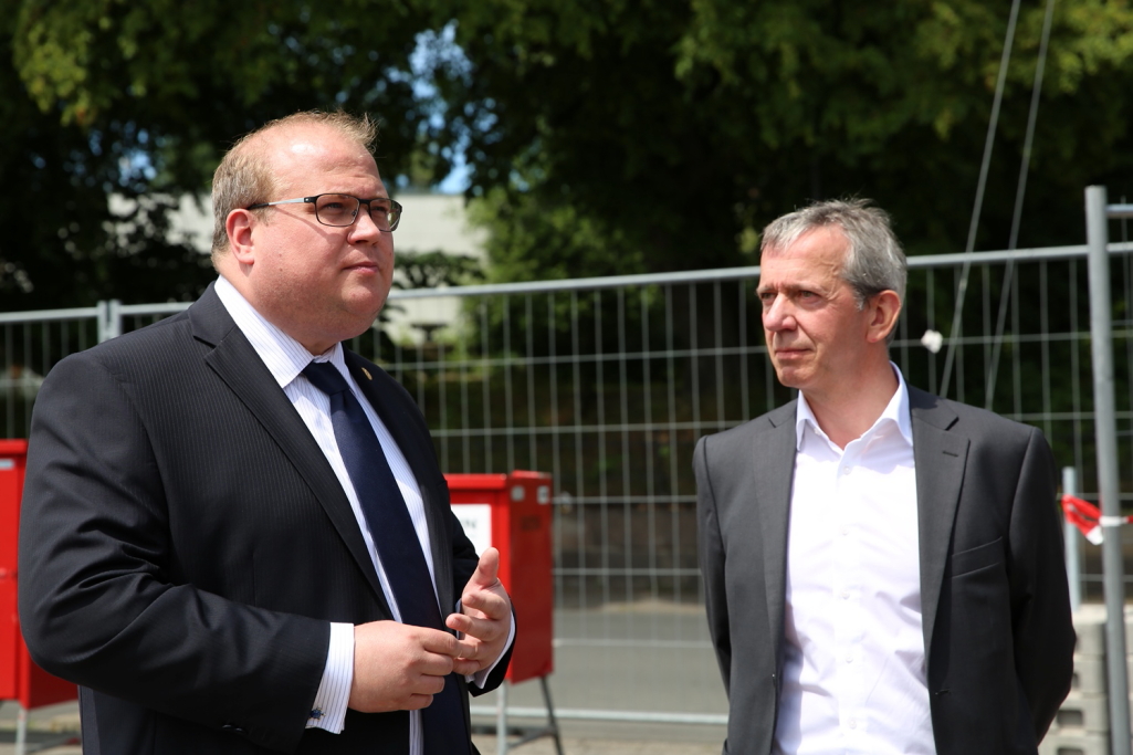 Investor Eberhard Unger von der Kurhessen Gewerbebau sprach von einem besonderen Tag für Alsfeld. Er stellte ein modernes, attraktives und nachhaltiges Zentrum in Aussicht, das wohl im Juni 2017 eröffnet werden soll. Das Gebäude soll dann eine Fläche von rund 3.500 Quadratmetern für Handel und Gewerbe bieten, hinzu kommen 90 Stellplätze, davon 45 auf einem Parkdeck. Zu den bereits bekannten Mietern zählen dm-Drogerie, mister*lady, k+k Schuhe und Charles Vögele Mode. „Mit weiteren Mietern wird noch verhandelt“, so Unger. Er verglich das Volumen des Neubaus mit einer Größe von etwa dreißig Einfamilienhäusern.