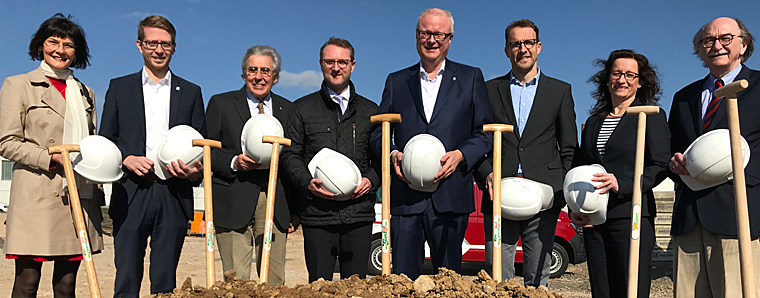 Nach dem Spatenstich kann es nun richtig losgehen mit dem Neubau des Finanzamts in Lauterbach. Dafür sorgten heute vor Ort in der Schillerstraße 15 (v.l.n.r.): die Landtagsabgeordneten Eva Goldbach und Michael Ruhl, der ehemalige Eigentümer des Grundstücks Gustav Stabernack, der Erste Kreisbeigeordnete des Vogelsbergkreises Dr. Jens Mischak, Hessens Finanzminister Dr. Thomas Schäfer, der Geschäftsführer der den Neubau errichtenden Werner Projektentwicklung GmbH Klaus Diegelmann, die Leiterin der Hessischen Zentralstelle für Grunderwerbsteuer Maren Vestweber und Lauterbachs Bürgermeister Rainer-Hans Vollmöller.