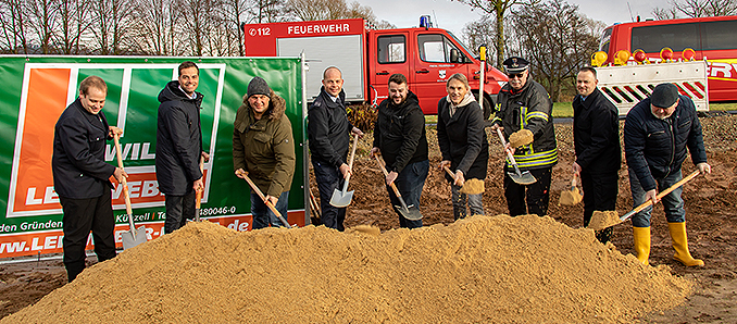 In 2024 soll das Gebäude fertig sein und mit Leben gefüllt werden, versprach Architekt Manfred Kullmann von „wkplan“. „Wir freuen uns auf diese Aufgabe. Wir standen von Anfang an bei diesem Planungsprozess dabei“, so Kullmann. Das Gebäude soll in massiver Bauweise erstellt werden. Die Halle wird durch eine temperierte Bodenplatte beheizt, so ist eine Grundwärme vorhanden. Alle anderen Räume bekommen eine Fußbodenheizung. „Das ist der heutigen Zeit geschuldet“, erklärt Architekt Manfred Kullmann. Nach dem Spatenstich mit Führungskräften aus Politik, Bauamt, Baufirmen und Feuerwehren gab es warme Getränke und belegte Brötchen. +++ keg