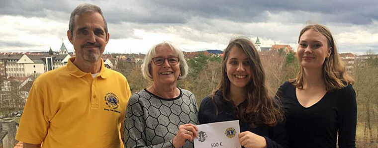 Dr. Leonhard Hering (Präsident Lions Club Hünfeld), Rita Fennel, Johanna Hering (Präsidentin LEO Club Hünfeld), Viktoria Schwarz (LEO Club). (v.l.)