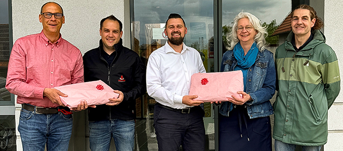 Die Spendenübergabe erfolgte durch den Einrichtungsleiter Herrn Will, die Schulleiterin Frau Strott und den Erziehungsleiter Herrn Lotz. Empfangen wurden die Puppen von Bürgermeister Thomas Henfling und Gemeindebrandinspektor Michael Röll. Herr Will erklärte, dass die Idee zur Spende nach einem Kellerbrand in der eigenen Einrichtung entstanden sei. Mit der Spende möchten die Verantwortlichen der Jugendeinrichtung ihren Dank für die hohe Einsatzbereitschaft und das professionelle Handeln der Feuerwehrkräfte im Sinntal ausdrücken, unabhängig von der Tages- oder Nachtzeit.