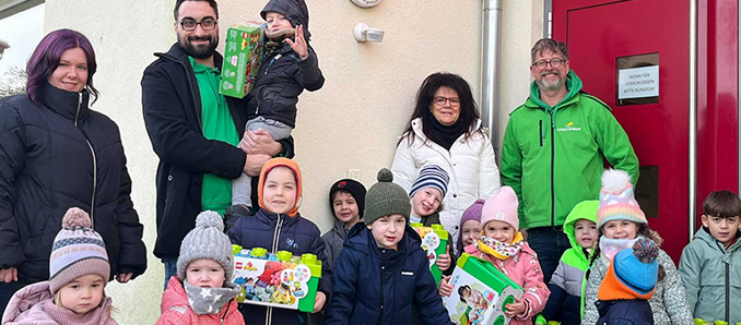 So durften sich die Sprösslinge nun über neue Bauklötze von Lego Duplo sowie eine Spielzeugeisenbahn der Marke freuen. „Eine Spende in diesem Umfang ist etwas ganz Besonderes. Nun haben wir für beide Gruppen ausreichendes Legomaterial. Damit können alle Kinder, auch unsere Kleinsten, die farbenfrohe Vielfalt für kreatives Bauen nutzen“, freut sich Kita-Leiterin Andrea Glock.