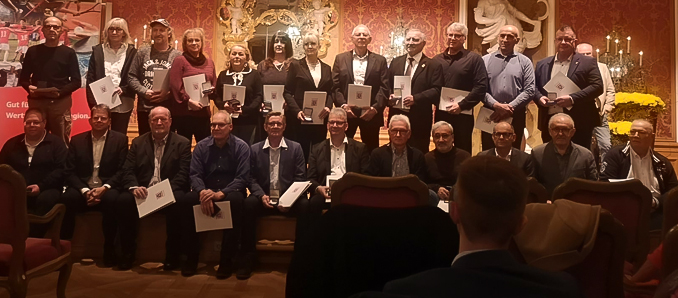 Neben den sportlichen Auszeichnungen verlieh die Stadt Fulda am Freitag auch die Ehrenmedaille für langjähriges ehrenamtliches Engagement. Insgesamt 22 Personen wurden für 15-, 25- und 40-jährige Tätigkeit in ihren Vereinen gewürdigt.