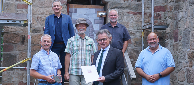 Der Sprecher der Hessischen Landesregierung, Staatssekretär Michael Bußer, hat am Donnerstag einen Förderbescheid in Höhe von 5.000 Euro an Stephan Möller vom Förderverein Burgreste Steinau e.V. überreicht. Mit dem Geld werden der Bau einer Begegnungsstätte sowie die Gestaltung eines Platzes inmitten der Burganlage mitfinanziert. Die Mittel stammen aus dem Programm „Starkes Dorf – Wir machen mit!“ der Hessischen Landesregierung.