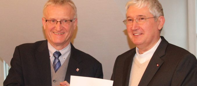 Fulda. Offizielle Übergabe: Der Staatssekretär des Sozialministeriums, Dr. Wolfgang Dippel, überreichte im Caritas-Haus den Förderbescheid des Landes für ein Wohnheim, das die Caritas Fulda in Hünfeld für Menschen mit Behinderung bauen lässt. Das Wohnheim, das speziell auf die Bedarfe von Personen mit zunehmenden Alter und damit einhergehenden größeren körperlichen Einschränkungen zugeschnitten ist und 13 Plätze haben wird, entsteht im Rahmen eines größeren Bauprojektes mit inklusivem Konzept: Rund um das Wohnheim werden zunächst 28 barrierefreie und teilweise rollstuhlgerechte Wohnungen für Jedermann entstehen. Die Caritas möchte mit diesem Wohnverbund in der Region Hünfeld eine ganzheitliche und sozialräumliche Versorgung mit stadtnahen Wohnraum für Menschen mit Einschränkungen schaffen.