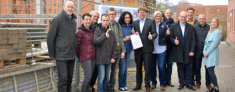 Volker Eichenauer (Bauleiter, antonius), Mutter von Markus Damm, Steffi Gröger (Betreutes Wohnen am Campus, antonius), Markus Daum (Startbahnschüler), Benedikt Bolz (Startbahnschüler), Victoria Werklann (Startbahnschülerin), Oberbürgermeister Dr. Heiko Wingenfeld, Michaela Lengsfeld (Geschäftsführerin, antonius), Gösta Weber (Architekt), Jürgen Fehl (Leiter Bauaufsichtsamt und Wohnungsbauförderung Stadt Fulda), Rainer Sippel (Geschäftsführer, antonius), Günter Habig (Prokurist, antonius) und Sophie Hillenbrand (Bauaufsichtsamt der Stadt Fulda).