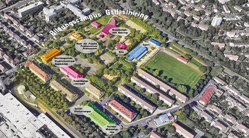 Inzwischen spricht die Stadt vom „Bildungscampus Gallasiniring“: Rund um den Gallasiniring gruppieren sich eine ganze Reihe von Institutionen und städtischen Einrichtungen, die sich um das Thema Bildung, Erziehung, Familie und Gesundheit ranken: Angefangen vom Gebäude Gallasiniring 30, das die Stadt vom Landkreis Fulda erworben hatte und in dem früher unter anderem die Kreisbildstelle untergebracht war; hier ist inzwischen seit 2013 das „Haus der Familie“ ansässig mit Angeboten unter anderem von der Kinderbetreuung (Krippe) über die Deutsche Familienstiftung bis zum Familienzentrum MütZe. Erst seit kurzem eröffnet ist das neue Stadtteilzentrum Ostend im Gebäude Gallasiniring 1 (ehemaliges Georg-Stieler-Haus), in dem der Jugendclub Ostend, die Erziehungsberatung, die Fachstelle Frühe Hilfen des Landkreises, der Pflegekinderdienst, die Jugendhilfe im Strafverfahren und die gemeinsame Adoptionsvermittlungsstelle von Stadt und Landkreis Fulda sowie der Landkreise Hersfeld-Rotenburg und Vogelsberg untergebracht sind. Für den Umbau waren im Förderprogramm Kosten in Höhe von 4,4 Millionen Euro angemeldet. Es sind mit einem Aufzug barrierefrei erschlossene, hochwertige Büroräume und multifunktionale Stadtteilräume entstanden. Durch verschiedene Zugänge (z.B. zum Jugendclub oder zum Stadtteilzentrum) können die Besucherströme gut gelenkt werden. In der vergangenen Woche konnte sich die Öffentlichkeit bei einem „Tag der offenen Tür“ einen Eindruck der neuen Räumlichkeiten verschaffen, die bereits intensiv genutzt werden.
