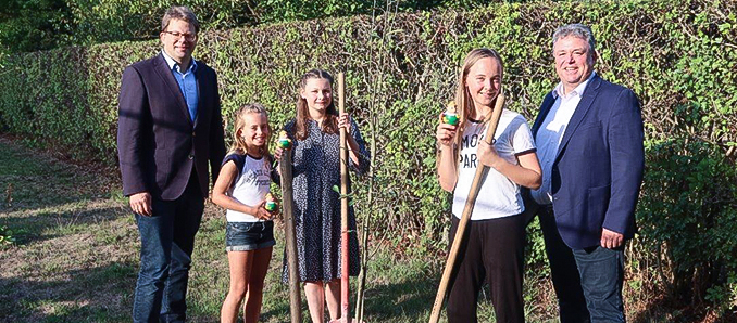 Bereits seit einigen Wochen läuft die Baumpflanzaktion von Stadt Fulda und Landesgartenschau. Jetzt trafen Oberbürgermeister Dr. Heiko Wingenfeld und LGS-Geschäftsführer Ulrich Schmitt die drei Fuldaer Schülerinnen, auf deren Initiative die Aktion zurückging. Die Schwestern Amelie und Finja Haller und ihre Freundin Luisa Kömpel hatten im vergangenen Jahr einen Brief an den Oberbürgermeister geschrieben und vorgeschlagen, eine Baumpflanzaktion zu starten, um etwas für das Klima zu tun.