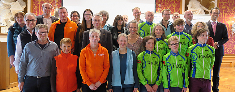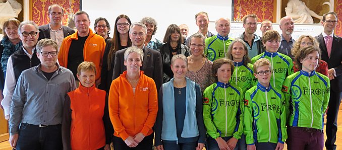 Fulda. Im Einsatz für das Klima: Vom 20. Juni bis 10. Juli hat die Stadt Fulda am bundesweiten Wettbewerb „Stadtradeln“ teilgenommen – jetzt wurden die Ergebnisse präsentiert und die Sieger ausgezeichnet. Drei Wochen lang hieß es für alle Fuldaer Bürgerinnen und Bürger, so viele CO2-freie Kilometer mit dem Fahrrad zurückzulegen wie möglich. Insbesondere ging es um Wege zur Arbeit oder zur Schule, die sonst mit dem Auto zurückgelegt werden. Auf einer Internetseite konnten alle Teilnehmerinnen und Teilnehmer einem bestehenden Team beitreten oder ein eigenes Team gründen. Die täglich geradelten Kilometer trugen Sie dann im Online-Radelkalender ein.