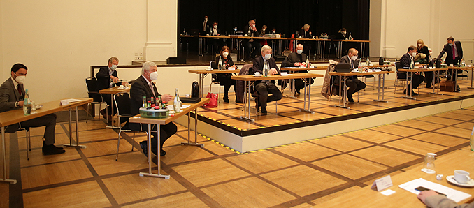 58 der 59 zählenden Stadtverordneten waren am Montagabend anlässlich ihrer Versammlung zusammengekommen. Im Rahmen der Versammlung, die Pandemie-bedingt wieder im Festsaal der Orangerie stattfand, haben sich die fünf Fachausschüsse der Stadtverordnetenversammlung – der Ausschuss für Wirtschaft, Verkehr und Digitalisierung, der Ausschuss für Bauwesen, Stadtplanung und Klimaschutz, der Ausschuss für Soziales, Familie und Jugend, der Haupt- und Finanzausschuss sowie der Schul-, Kultur- und Sportausschuss - neu konstituiert.