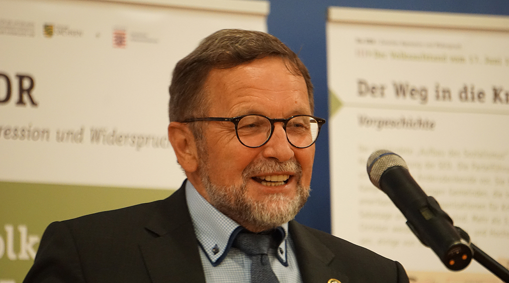 Der Stiftungsratsvorsitzende Dr. Stefan Heck, Staatssekretär im Hessischen Ministerium des Innern und für Sport, ging in seiner Ansprache auf die großen Verdienste von Dr. Fennel und Herrn Jost ein. Das von beiden unter Beweis gestellte Engagement sei herausragend gewesen und war entscheidend, um die Stiftung wieder auf einen guten Weg zu bringen. Beide hätten Point Alpha maßgeblich geprägt. Durch ihren jahrzehntelangen, engen Bezug zur Gedenkstätte hatten sich beide vor gut zweieinhalb Jahren in einer schwierigen Situation in die Pflicht nehmen lassen. „Sie waren angetreten, um die Gedenkstätte nach vorne zu bringen. Es ist noch Einiges zu tun, aber mittlerweile sei wieder Ruhe eingekehrt und man habe festen Boden unter den Füßen“, machte Heck am Beispiel zahlreicher Maßnahmen, Aktionen, Veranstaltungen und veränderten Abläufen deutlich. Die Verbundenheit zwischen Point Alpha und den beiden (Un)ruheständlern ist groß. Die ehrenamtliche Arbeit im Vorstand hat Dr. Fennel und Herrn Jost auf Trab gehalten. Über 30 Arbeitsstunden in der Woche an den drei Standorten im Geisaer Schloss, im Haus auf der Grenze und im US-Camp waren die Regel. „Damit haben wir am Anfang ehrlich gesagt nicht gerechnet“, gibt Fennel zu, „doch je mehr Einblick wir bekommen haben, desto deutlicher kamen die Defizite zum Vorschein.“