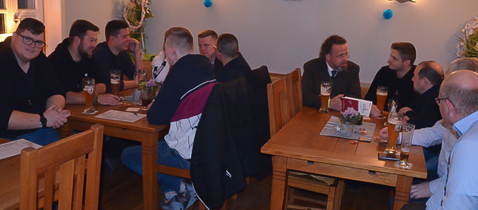 Die anstehende Stichwahl und die gesamte Eichenzeller Bürgermeisterwahl sorgten beim letzten Stammtisch der Jungen Union Eichenzell für reichlich Gesprächsstoff. Mit Spannung erwarten die Jungpolitiker das Ergebnis der Stichwahl und sie hoffen, dass ihr Wunschkandidat Johannes Rothmund als neuer Bürgermeister gewählt wird. JU-Vorsitzender Julian Rudolf begrüßte in der gemütlichen Gaststube des „Alten Brauhaus“ die Teilnehmer der geselligen Stammtischrunde. Besonders freute sich Julian Rudolf über die Teilnahme von Bürgermeisterkandidat Johannes Rothmund, der sich zum Abschluss seines anstrengenden Wahlkampfes gut gelaunt zu seinen JU-Freunden gesellte.