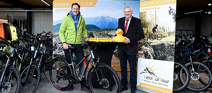 Die 25 schnellsten Enten des Entenrennens gewinnen einen Preis. Den Hauptpreis – ein E-Bike der Marke Malaguti im Wert von rund 3.600 Euro – stellt jetzt das Radunternehmen aus Neuhof-Dorfborn zur Verfügung. Auch dessen Tochtergesellschaft Velolease unterstützt das Projekt er:wachsen und spendet für jeden im Jubiläumsjahr 2023 abgeschlossenen Leasingvertrag 15 Euro an die St. Antonius-Stiftung.