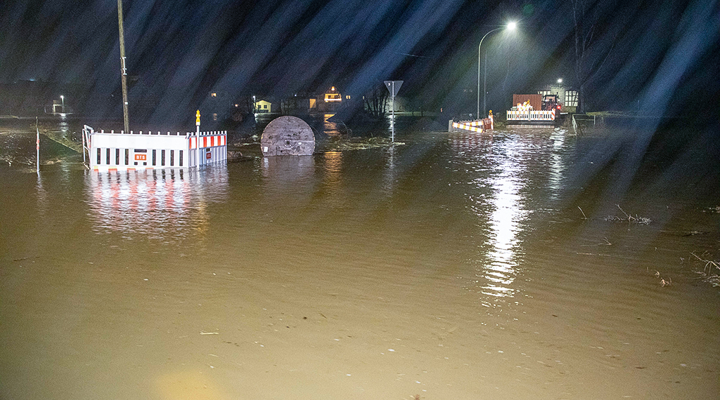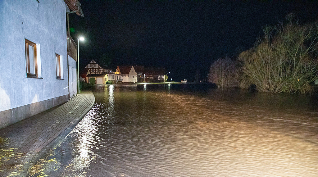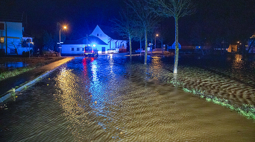 Auch die vom Hochwasser bislang verschonten Regionen in Deutschland haben zunehmend mit dem Wasser zu kämpfen. Denn auch hier sind die Boden gesättigt und können oftmals kaum noch Wasser aufnehmen. Die Folgen werden auch in Ost- und Mittelhessen immer sichtbarer. In gleich mehreren Landkreisen hieß es ab späten Dienstagabend und in der Nacht auf Mittwoch: Land unter! Im Vogelsbergkreis traf es vor allem die Gemeinden Grebenhain und Herbstein, wo mehrere Keller vollliefen und Straßen überflutet wurden. Im benachbarten Hosenfeld drohte gar das örtliche Gerätehaus der Feuerwehr vom Hochwasser geflutet zu werden.