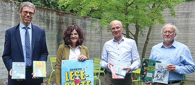 Im Rahmen der Bücherübergabe durch Richard Hartwig aus dem Vorstandsstab der Sparkasse Fulda in der HLSB Fulda warben der stellvertretende Leiter der HLSB Berthold Weiß, Kulturamtsleiter der Stadt Fulda Dr. Thomas Heiler sowie Sabine Appl aus der Kinder- und Jugendabteilung der HLSB für eine rege Beteiligung. „Dieses Projekt ist ein weiterer Mosaikstein in der Leseförderung, für die wir uns besonders einsetzen“, erläuterte Appl.